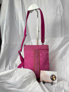 Compact bag in vibrant fuchsia pink with a stylish monogram pattern. Durable canvas with leather accents, adjustable strap. Spacious compartment for all your essentials! ❤️