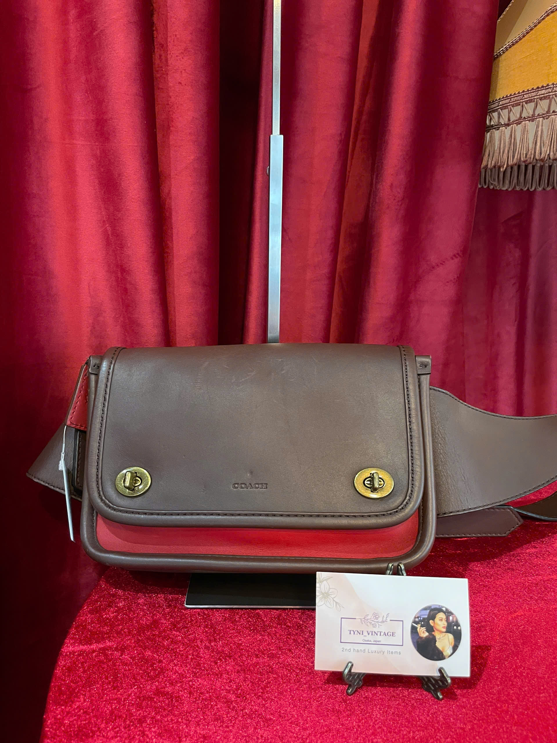 Enhance your style with this vintage Coach leather crossbody bag, designed for both elegance and functionality. Crafted from high-quality leather, this bag features a unique color combination of deep brown and bold red, creating a striking and sophisticated look.
