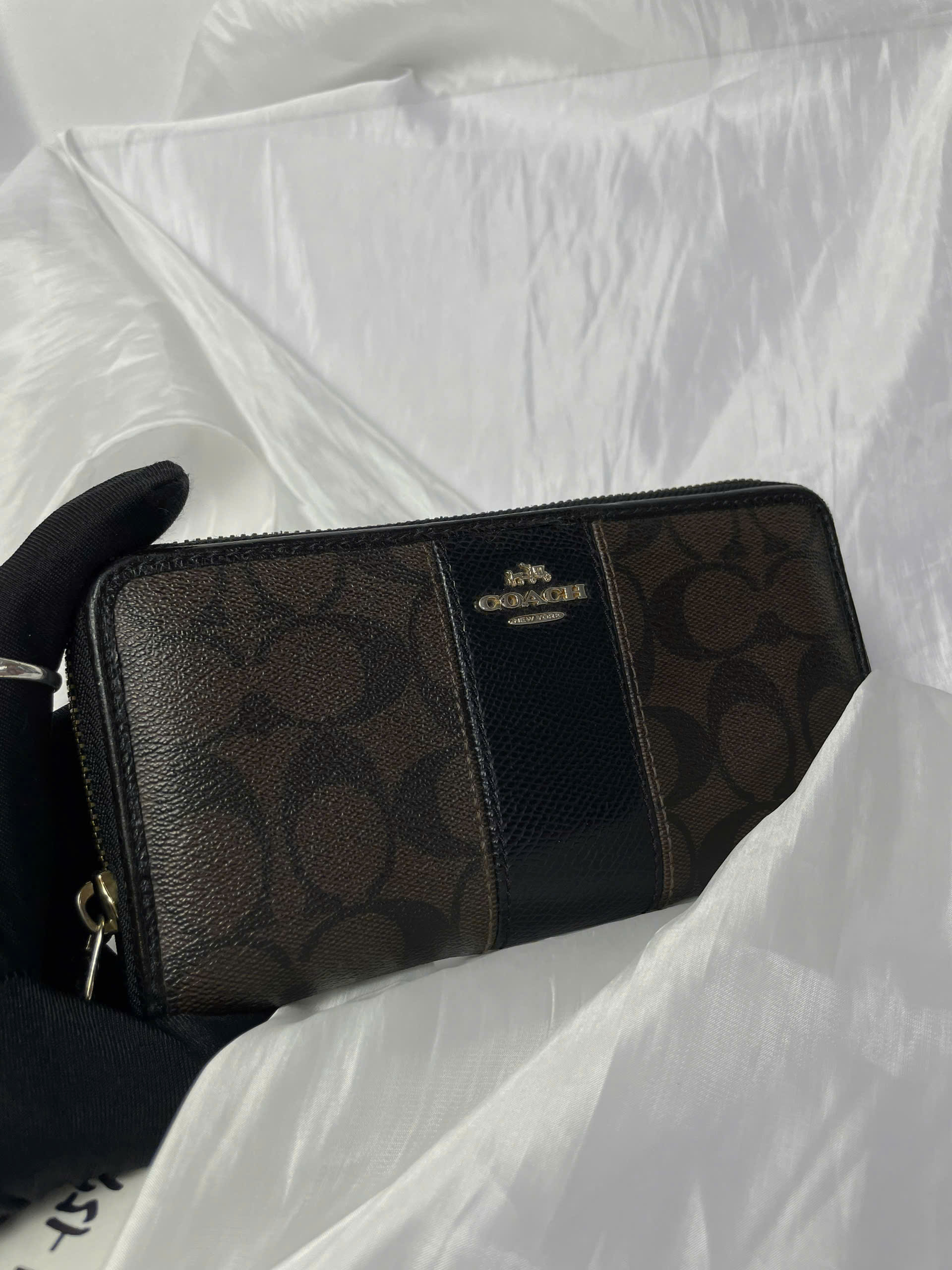 The Coach Signature Accordion Wallet exudes elegance and versatility, making it a perfect accessory for any style.