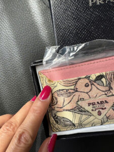 Prada wallet with rabbit motif has a unique and artistic style. The wallet is made from high-quality materials, with a rabbit image mixed on a harmonious color background, combined with a gentle pink border, creating a feminine highlight. Compact, convenient design, suitable for holding cards and small items. The product comes with a luxurious box, affirming the brand’s class