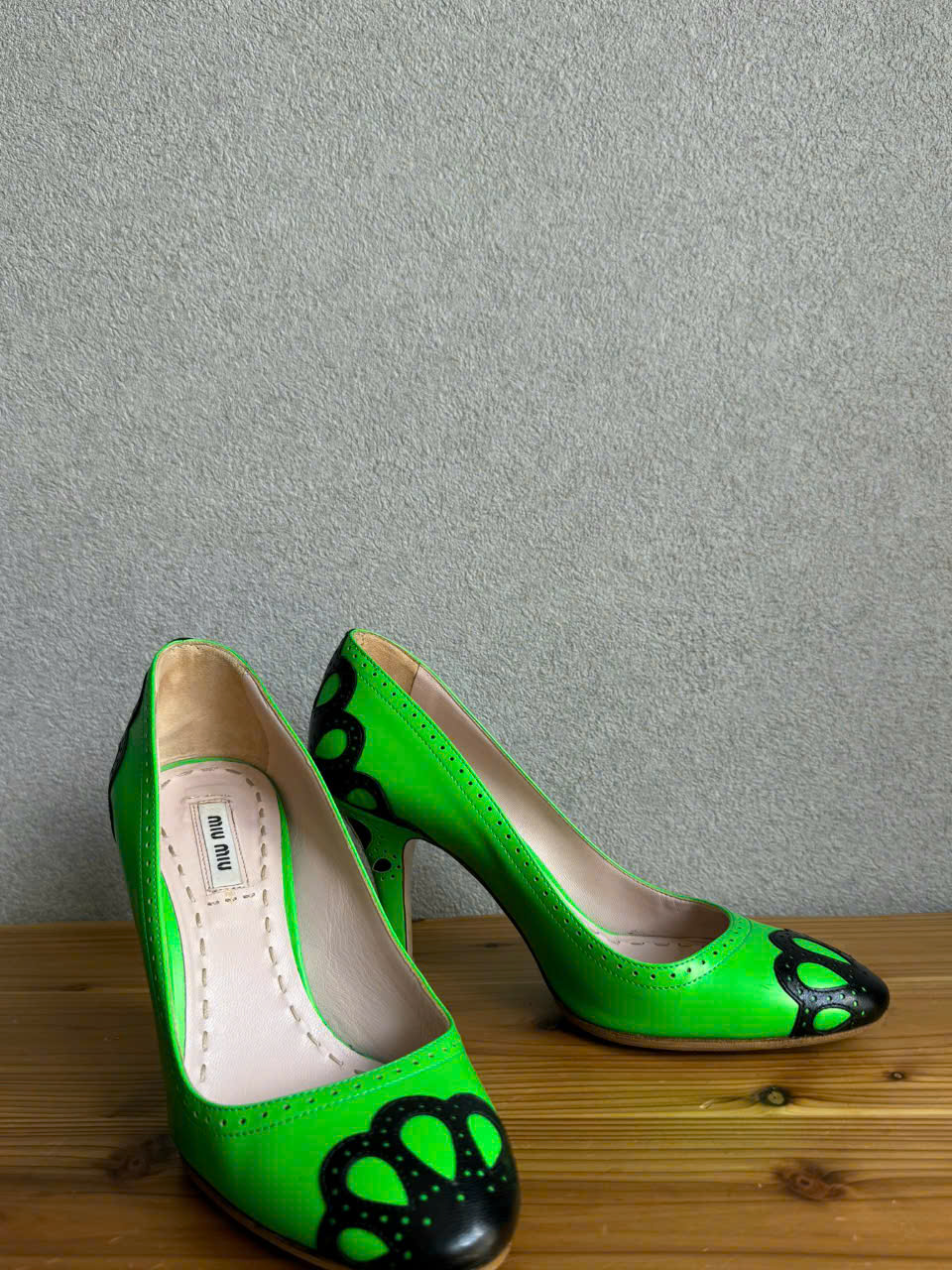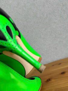 Vibrant green with unique black arch-shaped patterns on the toe and heel.