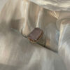 Viên đá quý được gắn chắc chắn trên một chiếc nhẫn bạc cao cấp, thiết kế bất đối xứng mang phong cách đương đại. Một hàng đá lấp lánh được đính dọc theo một bên của nhẫn, tôn thêm vẻ lộng lẫy và tinh tế.