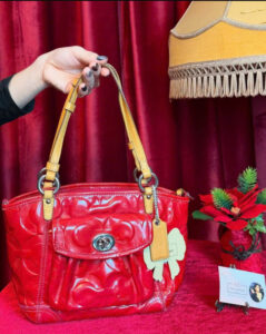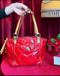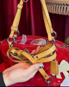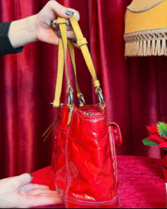 Túi xách bằng da bằng sáng chế dập nổi màu đỏ Coach – Thanh lịch và phong cách Nâng cấp bộ sưu tập của bạn với chiếc túi xách bằng da bằng sáng chế màu đỏ Coach tuyệt đẹp này, có hoa văn dập nổi bắt mắt. Chiếc túi này được thiết kế để tạo nên một tuyên bố với lớp hoàn thiện bóng bẩy và các chi tiết thanh lịch. Tính năng sản phẩm: • Chất liệu: Da bằng sáng chế cao cấp với họa tiết chữ ký Coach dập nổi sang trọng. • Màu sắc: Màu đỏ đậm và rực rỡ, hoàn hảo để thêm màu sắc nổi bật cho bất kỳ trang phục nào. • Dây đai: Tay cầm bằng da màu vàng tương phản với phần cứng tông màu bạc, mang lại cảm giác cầm nắm phong cách và thoải mái. • Đóng cửa: Khóa kéo trên cùng an toàn để giữ an toàn cho các vật dụng cần thiết của bạn. • Túi trước: Túi nắp phía trước tiện lợi với khóa xoay để dễ dàng lấy các vật dụng thường dùng. • Nội thất: Rộng rãi và có lót đầy đủ với nhiều ngăn để tổ chức tốt hơn. • Kích thước: Nhỏ gọn nhưng rộng rãi, lý tưởng cho việc sử dụng hàng ngày, làm việc hoặc đi chơi bình thường. • Phụ kiện: Đi kèm với thẻ da Coach kèm theo và cửa hàng hình nơ đặc trưng