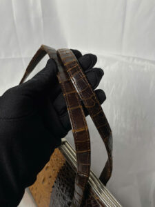 Túi xách da cá sấu cao cấp – Thiết kế sang trọng được chế tác từ da cá sấu thật với hoa văn tự nhiên độc đáo. Sự kết hợp giữa tông màu nâu sẫm và nâu nhạt tạo ra sự tương phản nổi bật. Với hình dáng thanh lịch, tay cầm chắc chắn và khung có cấu trúc để duy trì hình dạng hoàn hảo của nó. Lý tưởng cho những ai đánh giá cao phong cách cổ điển và tinh tế, hoàn hảo cho các sự kiện, tiệc tùng hoặc sử dụng kinh doanh hàng ngày.