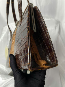 Túi xách da cá sấu cao cấp – Thiết kế sang trọng được chế tác từ da cá sấu thật với hoa văn tự nhiên độc đáo. Sự kết hợp giữa tông màu nâu sẫm và nâu nhạt tạo ra sự tương phản nổi bật. Với hình dáng thanh lịch, tay cầm chắc chắn và khung có cấu trúc để duy trì hình dạng hoàn hảo của nó. Lý tưởng cho những ai đánh giá cao phong cách cổ điển và tinh tế, hoàn hảo cho các sự kiện, tiệc tùng hoặc sử dụng kinh doanh hàng ngày.