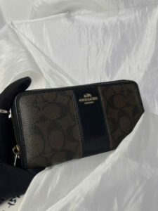 Ví Coach Signature Accordion – Thanh lịch và thiết thực Thương hiệu: Coach Chất liệu: Vải tráng kết hợp với da thật Màu sắc: Tông màu nâu và đen tinh tế Kích thước: 10 x 20 cm (rộng x dài) Thiết kế nổi bật: Coach “C” mang tính biểu tượng Họa tiết đặc trưng Viền da đen tạo thêm nét tinh tế Khóa kéo mượt mà và an toàn để tăng cường bảo vệ Tính năng chức năng: Nhiều ngăn đựng thẻ, tiền mặt và tài liệu Ngăn chính rộng rãi, phù hợp với điện thoại cỡ nhỏ Lý tưởng để sử dụng hàng ngày hoặc làm quà tặng sang trọng Ví Coach Signature Accordion toát lên sự sang trọng và linh hoạt, khiến nó trở thành một phụ kiện hoàn hảo cho mọi phong cách.