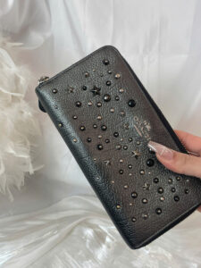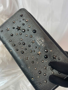 Tạo nên tuyên bố với chiếc ví đính đá da đen Coach này, sự kết hợp hoàn hảo giữa thiết kế sắc sảo và chức năng hàng ngày. Được chế tác từ da đá cuội chất lượng cao, chiếc ví này được trang trí bằng ngôi sao kim loại và đinh tán, tạo thêm nét táo bạo và phong cách cho bộ sưu tập phụ kiện của bạn.