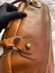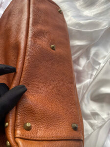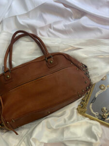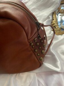 Brown Leather Handbag with Studded Details – Elegant & Stylish