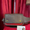 The bag’s structured flap closure has a beautifully curved edge, secured by a magnetic button for easy access. A prominent leather logo patch in the center enhances its refined look. The adjustable brown leather strap allows for comfortable crossbody or shoulder wear, making it a versatile choice for everyday use or special events.