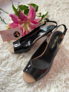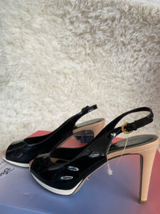 Thiết kế: Giày cao gót hở mũi với khóa kim loại có thể điều chỉnh ở dây đeo phía sau. Thiết kế toát lên vẻ sang trọng, phù hợp cho nhiều dịp khác nhau.