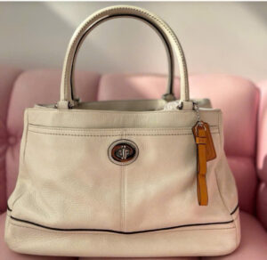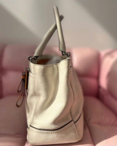 5. Thích hợp cho nhiều dịp khác nhau • Với thiết kế thiết thực và vẻ ngoài sang trọng, chiếc túi xách này lý tưởng cho công việc, đi chơi bình thường, tụ họp xã hội hoặc các sự kiện quan trọng. • Nó dễ dàng bổ sung cho trang phục công sở, váy hoặc trang phục hàng ngày. 6. Thông tin chi tiết • Màu sắc: Kem • Chất liệu: Da mềm cao cấp • Kiểu dáng: Túi xách / Carryall • Đóng cửa: Khóa kim loại xoắn ở mặt trước • Điểm nhấn: Thẻ màu rám nắng có thể tháo rời
